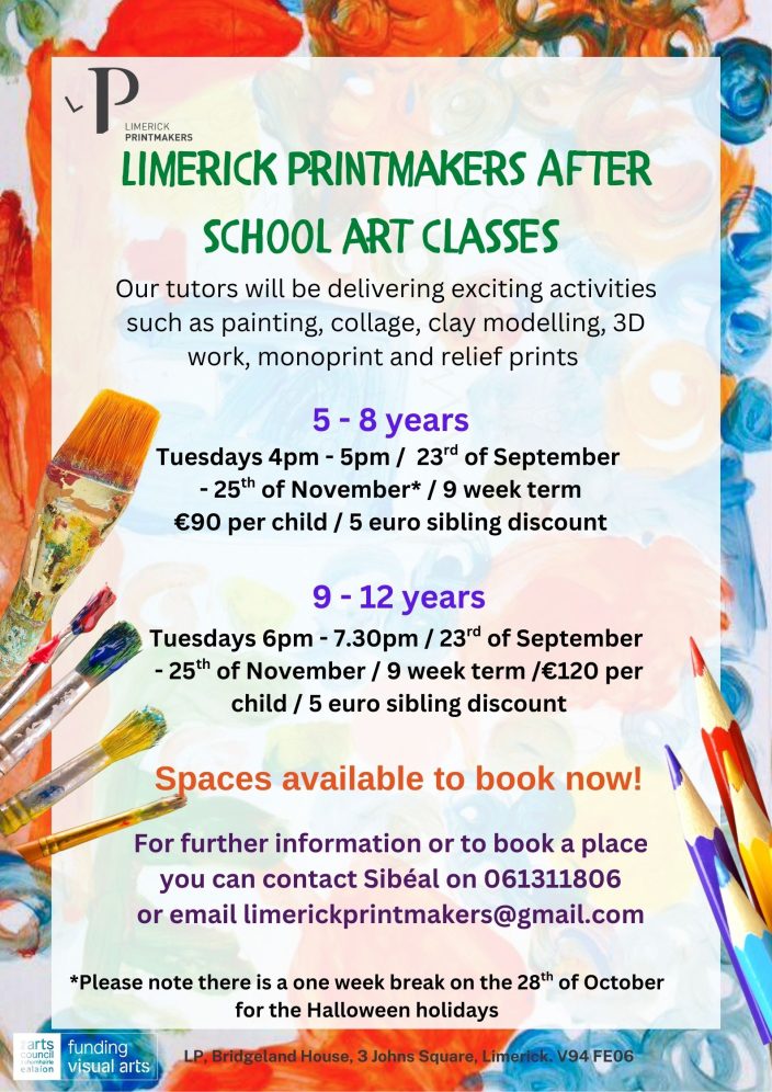 LIMERICK PRINTMAKERS AFTER SCHOOL ART CLASSES 2025!